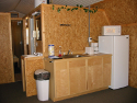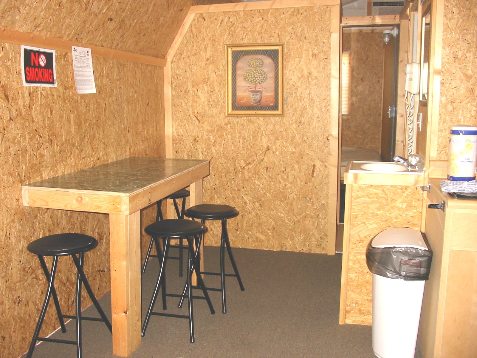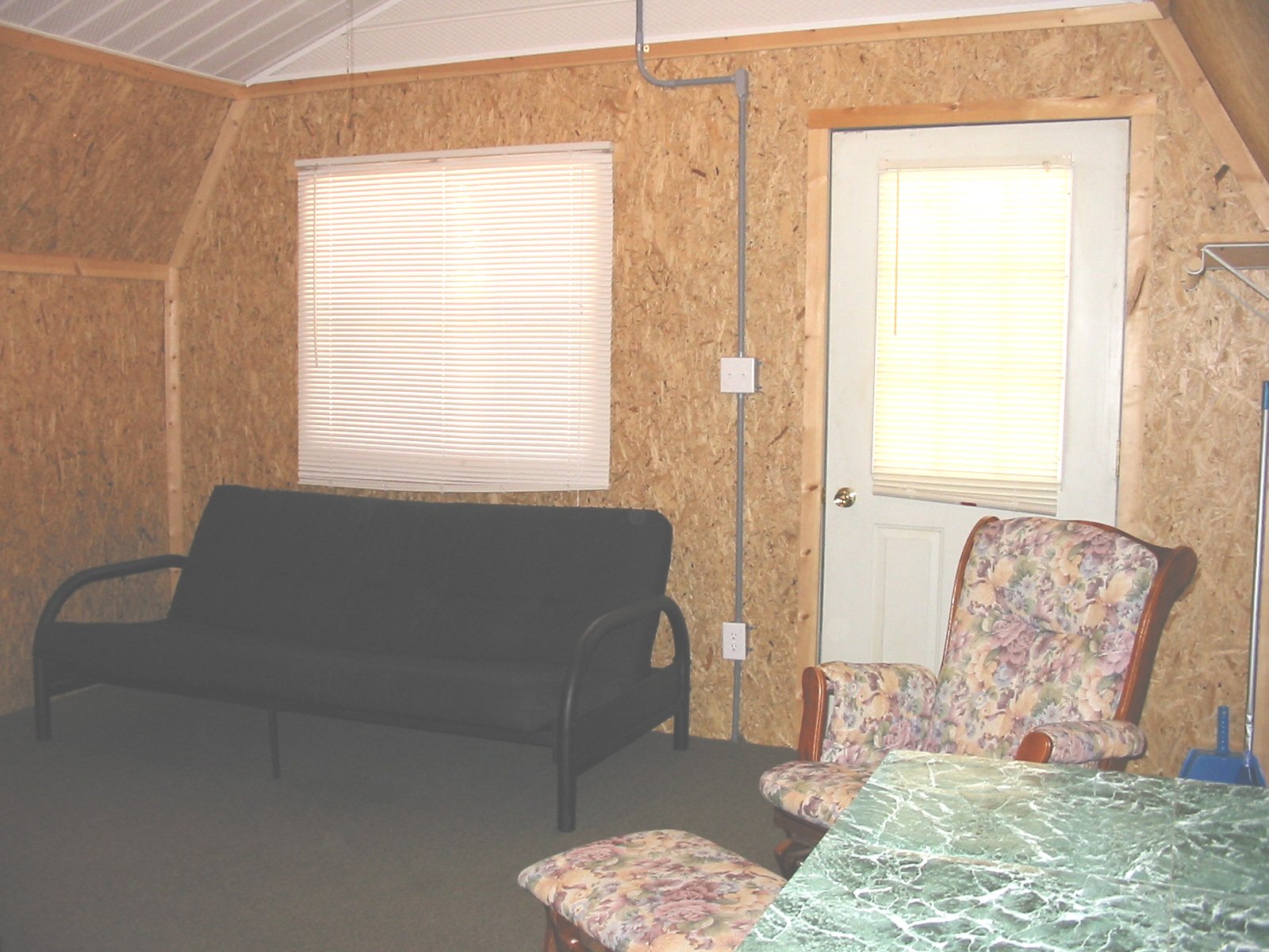 Cabins are comfortable 1 bedroom, with a full size bed and a set of (over/under) bunk beds, and includes Kitchenette & Living Room areas and a Private Bathroom with Hot Shower. |